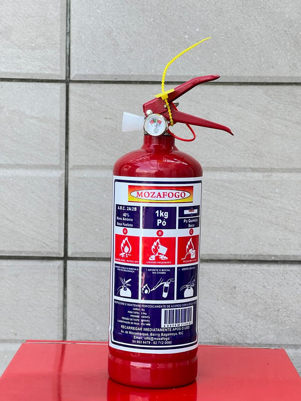 Extintor portátil de 1,5kg com Pó Químico Seco ABC, ideal para residências, escritórios e veículos. Eficaz contra incêndios em materiais sólidos, líquidos e equipamentos elétricos, possui design leve e ergonômico para fácil manuseio e resposta rápida em emergências.
