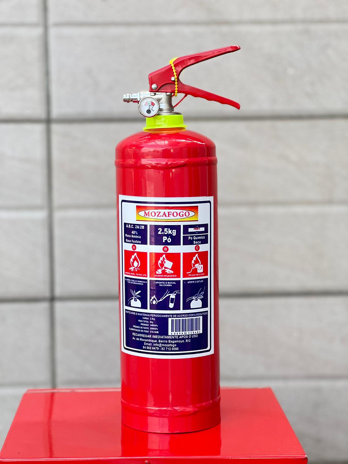 Extintor compacto de 2,5kg Pó Químico Seco ABC, ideal para residências, escritórios, veículos e comércios. Eficaz contra incêndios em materiais sólidos, líquidos e equipamentos elétricos, possui design leve e ergonômico para fácil manuseio e oferece segurança confiável em momentos críticos.